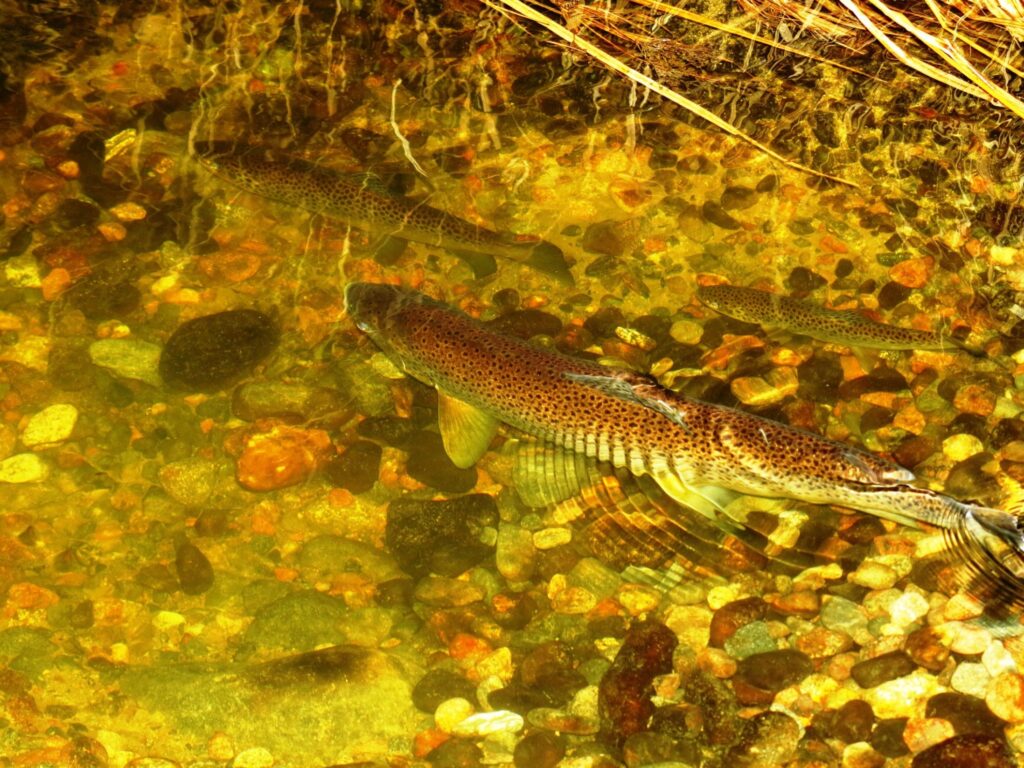 Isoja meritaimenia ja pienempiä paikallisia taimenia näkee parhaiten kutuaikana loka- marraskuussa kutusoraikoilla kutemassa.